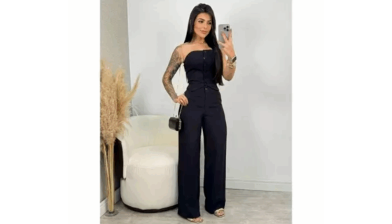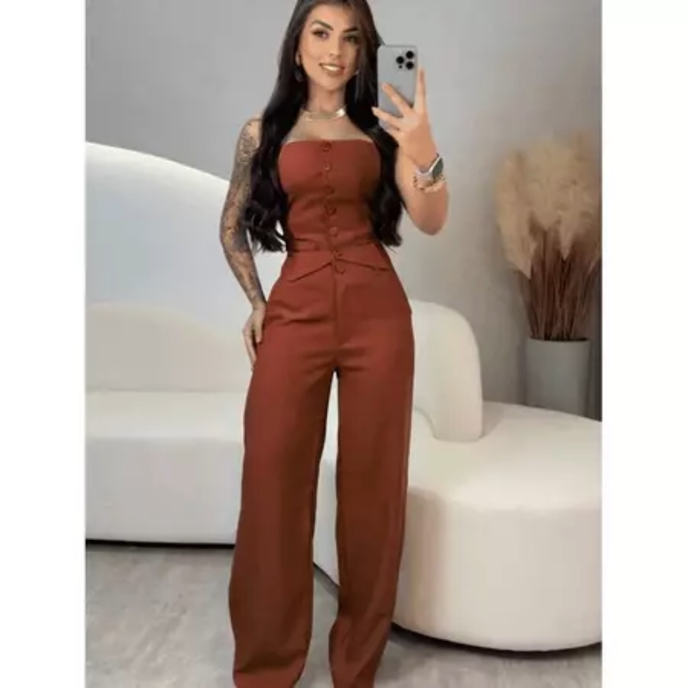 Conjunto Feminino Blusa Tomara que Caia e Calça Pantalona Alfaiataria