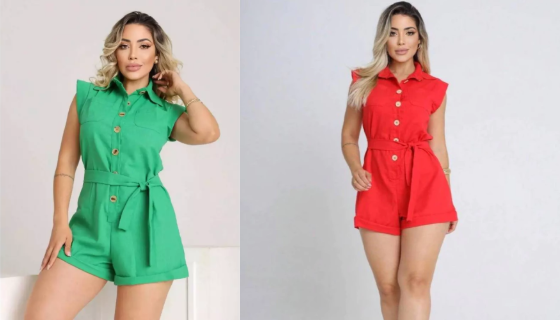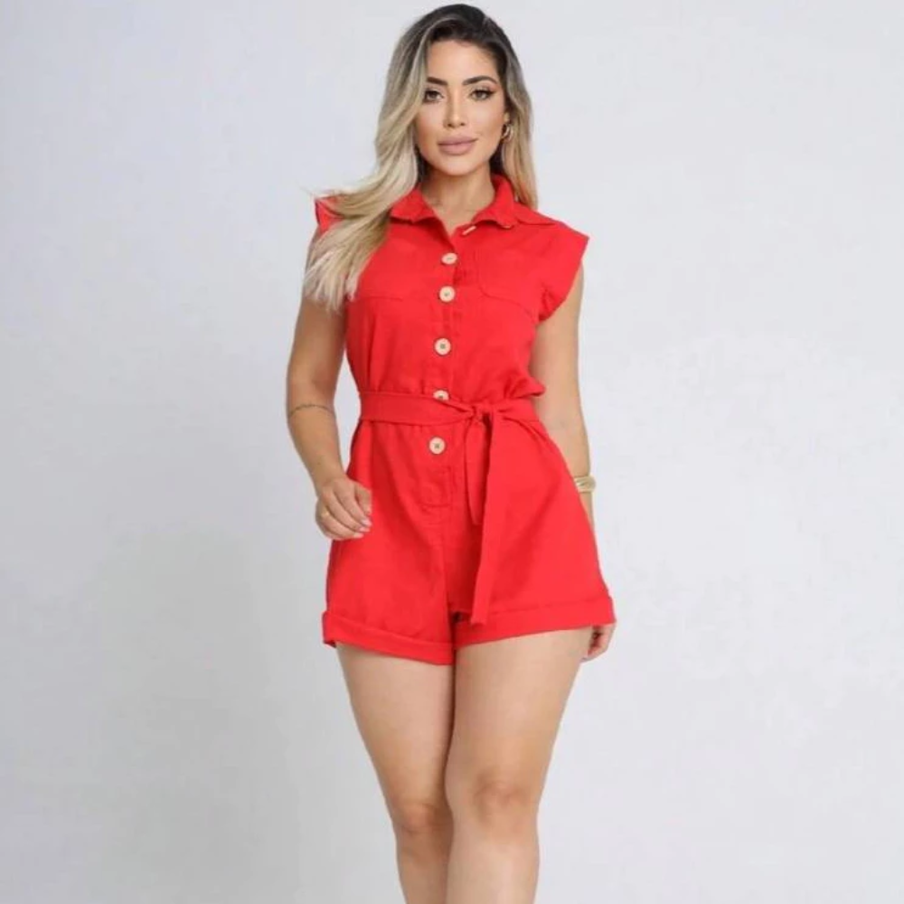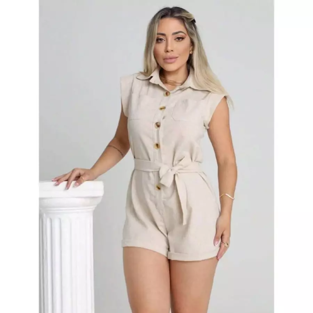Macaquinho Macacão Curto Feminino Regata em Linho Virgínia